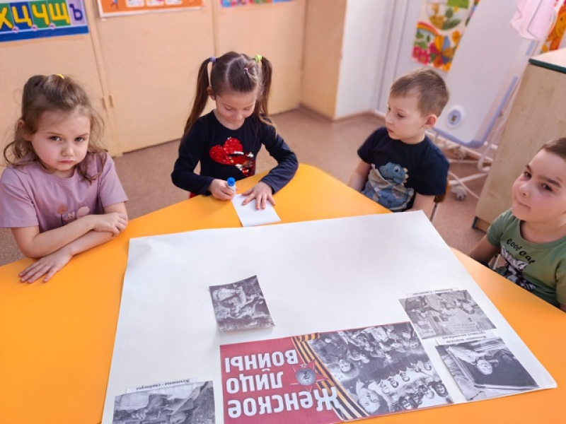 В ходе беседы дети узнали о различных профессиях, которые освоили женщины во время Великой Отечественной войны (снайперы, летчики, минеры и другие). Также они обсудили, чем женщины занимались в тылу. В завершение ребята создали плакат на тему «Женщины на войне».